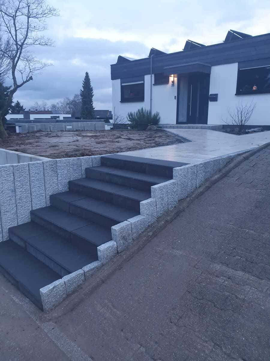 Wir bereiten den Untergrund präzise vor, sorgen für ein tragfähiges Fundament und verarbeiten hochwertige Beton- oder Natursteine mit höchster Genauigkeit. Ob für private Gärten oder repräsentative Gewerbeflächen – wir realisieren Ihre Treppenprojekte termingerecht und mit Blick für jedes Detail.